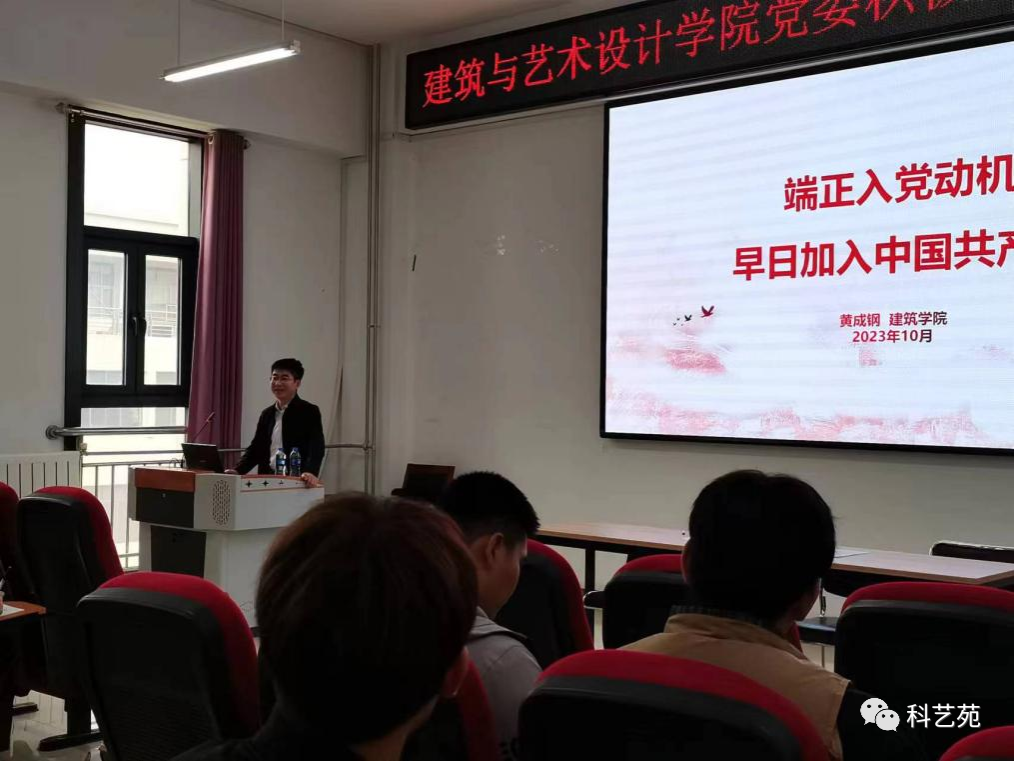 会议伊始,参会人员全体起立,一起奏唱国歌。党委书记黄成钢老师致辞,黄成钢着重介绍了入党积极分子在党课学习期间的学习方向以及如何增强自己的思想政治理论知识,加强日常思想政治的学习。