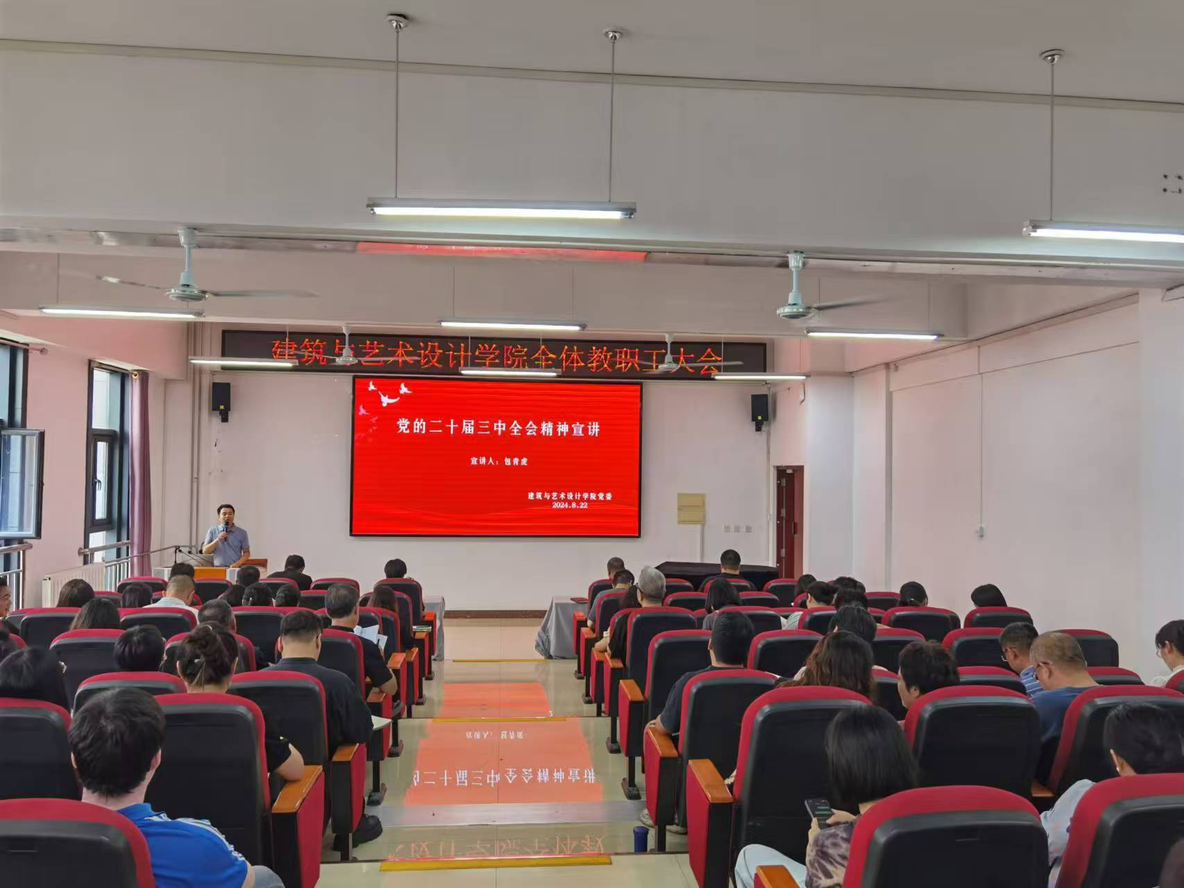 2024年8月22日下午3点,我院在明德楼B401召开全院教职工大会,进行政治理论学习,坚持以学铸魂,组织教职工开展集体学习,持续做好学习贯彻习近平新时代中国特色社会主义思想的深化、转化工作。会议由学院党委副书记包青虎主持,学院全体教职工参加学习。