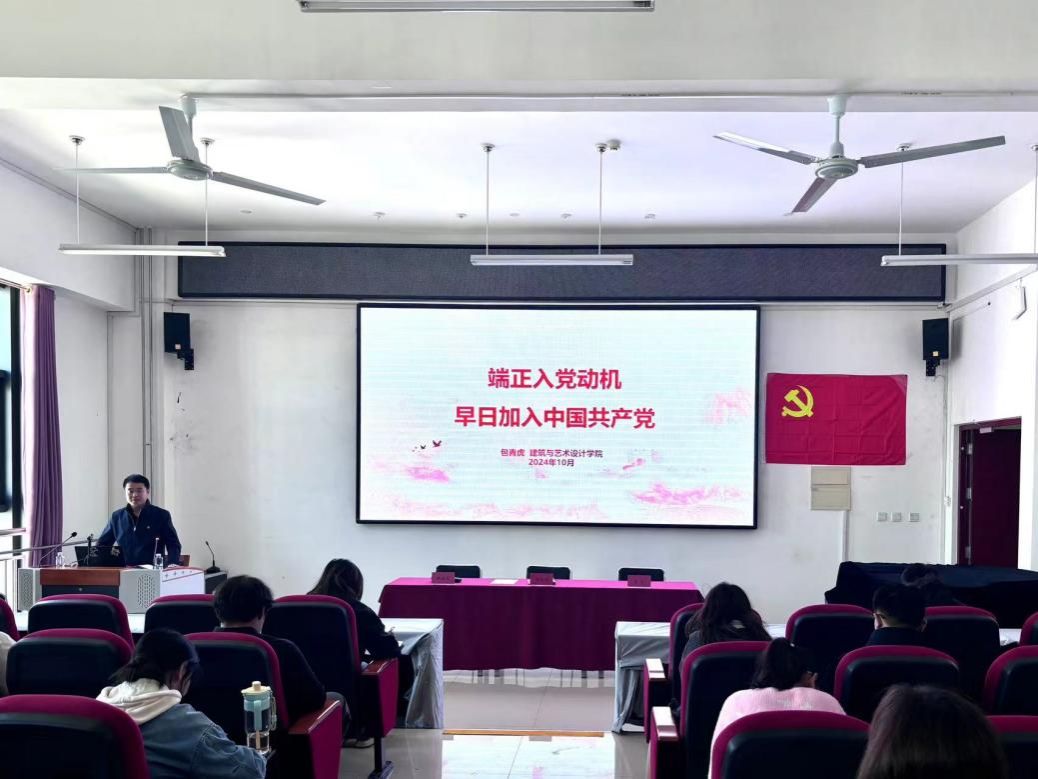 我院组织开展端正入党动机党课培训 为了让积极分子更好地了解入党程序和相关要求,真正做到在思想上和行动上入党,10月10日中午,我院组织开展了《端正入党动机 早日加入中国共产党》党课,本次课程的主讲人为学院党委副书记包青虎。 本次课程从党员的条件和标准是什么、如何端正入党动机、什么是正确的入党动机、怎样以实际行动争取早日入党进行了端正入党动机的讲解,课程强调,要认真学习党章和相关理论,奠定树立正确入党动机的思想基础,积极参加实践锻炼,不断端正自己的入党动机,并自觉接受组织培养,教育与考察。