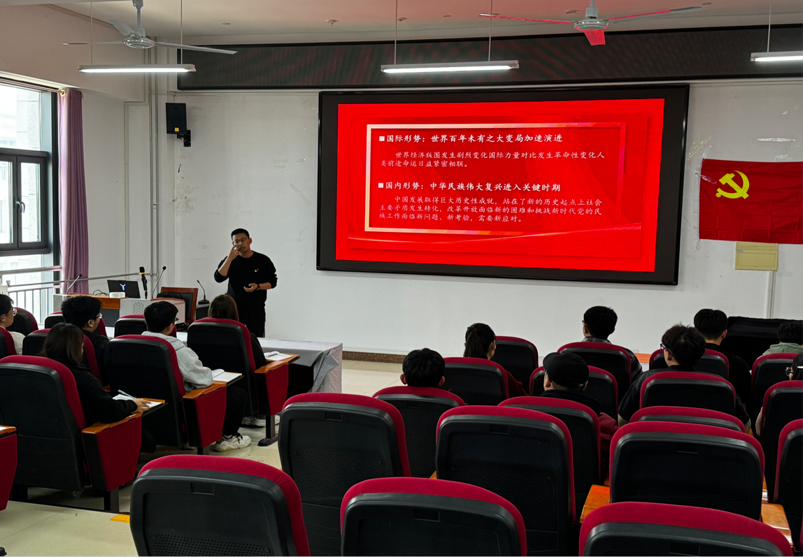为深化民族团结进步教育,铸牢中华民族共同体意识,加强各民族交往交流交融,促进各民族像石榴籽一样紧紧抱在一起,共同团结奋斗、共同繁荣发展。2024年10月14日中午12:30,我院在明德楼b401进行了“铸牢中华民族共同体意识”主题党课培训,本次培训的主讲人是朱国富老师。