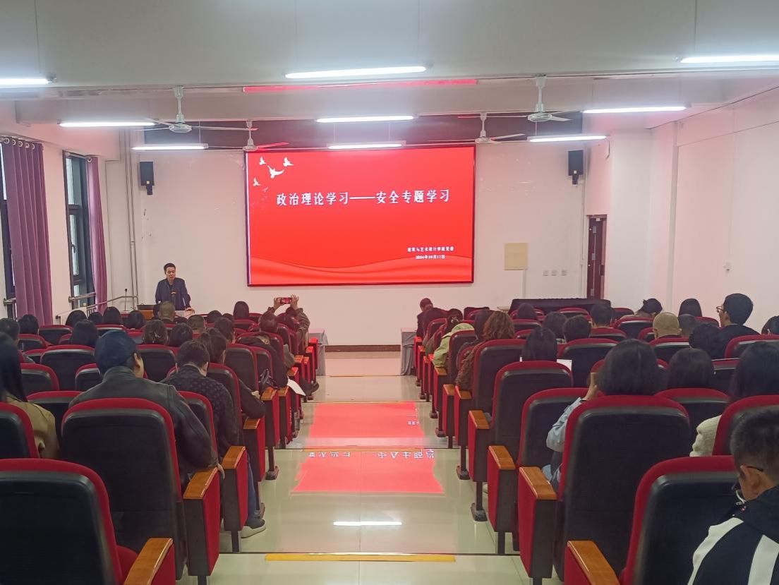 为进一步提高师生的安全意识,保证学院的安全稳定,2024年10月17日下午2:30,我院在明德楼B401召开教职工政治理论学习会,主题为安全专题学习,会议主持人为学院党委副书记包青虎,全院教职工参加学习。