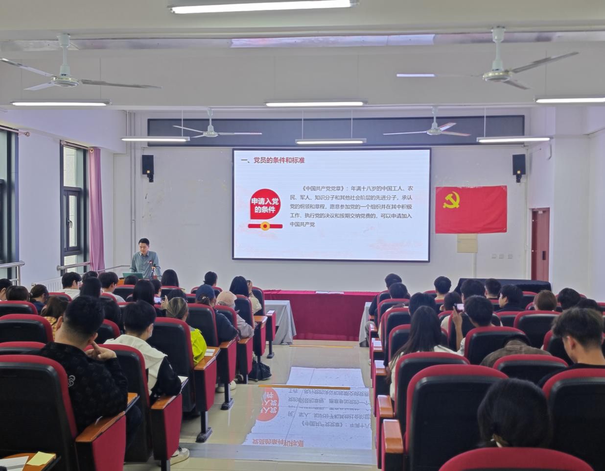 按照学校发展党员工作统一部署安排,2025年5月8日中午12:30,我院党委在明德楼B401举办2025上半年入党积极分子培训教育开幕式并进行第一次党课的授课,我院党委副书记包青虎、党委副书记兼副院长吴宇和学院党委组织委员、组织员佟若怡出席本次开幕式。