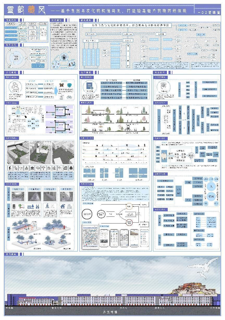 本届联合毕业设计题目是“雪域明珠·和谐共生:拉萨市八廓历史街区保护与更新设计”。项目设计考虑了特殊地域人文气候环境背景下的城市更新,以及藏式建筑的现代化更新,围绕八廓历史街区的实际需求拟定更新设计方案。