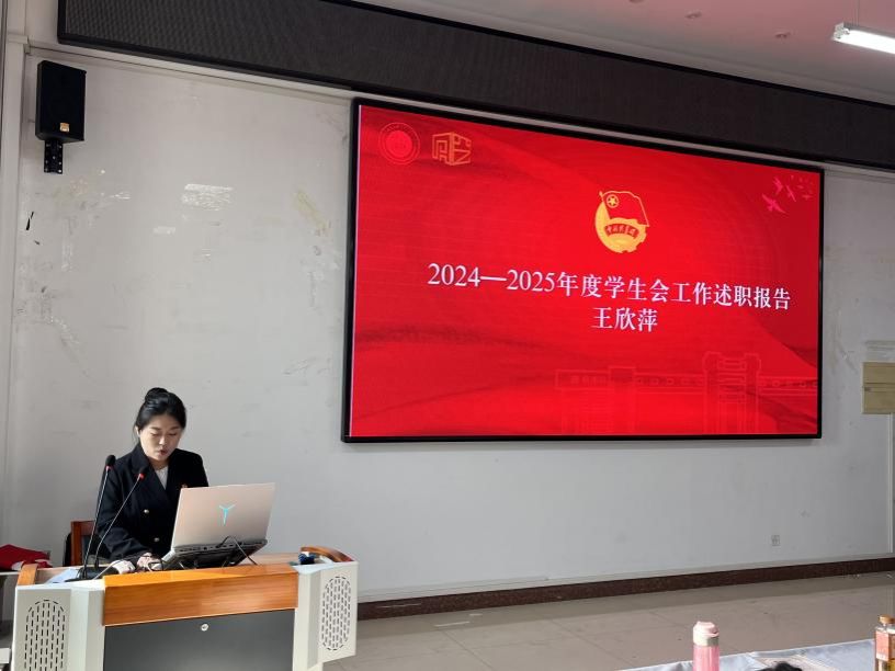 大会在庄严的国歌声中启幕。会上,我院第二届学生会主席王欣萍同学代表学生会作《2024—2025年度学生会工作述职报告》,全面回顾了过去一年在思想引领领域的扎实举措;梳理了组织建设、校园文化、权益服务等方面的成果与不足。