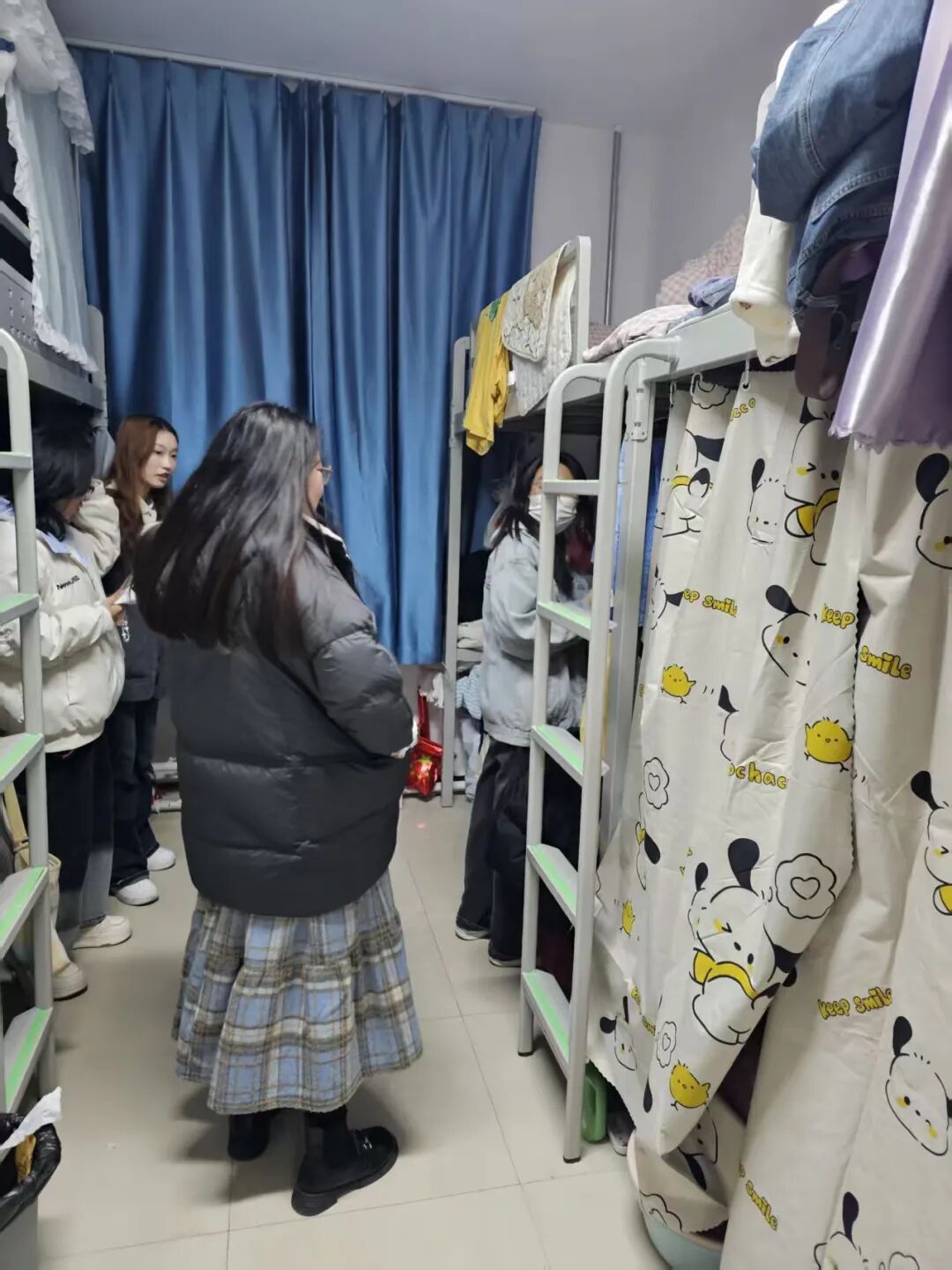 在检查过程中,学院领导及老师到达相应楼层进行查寝工作,他们分别对寝室卫生清理、整洁程度以及寝室的用电安全等方面进行了仔细检查,同学们也积极配合。
