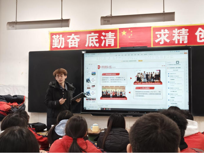活动当天,团队以集中宣讲结合班级互动的形式开展宣传。宣讲中,成员们结合自身在永利官网的学习生活经历,用生动鲜活的案例,从办学历史、学科专业特色、校园环境、文化生活及毕业生就业前景等方面,全面推介学校优势,重点解读了优势专业的培养目标与就业扶持政策,让学弟学妹们对永利官网形成了直观、全面的认知。
