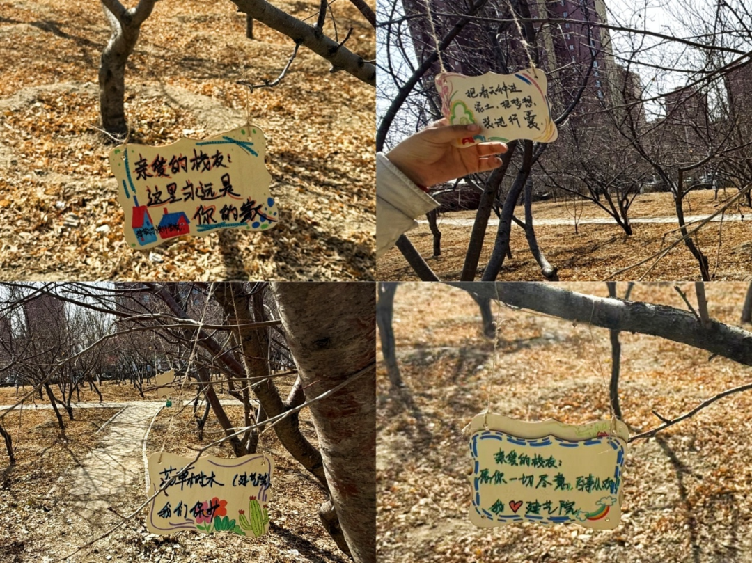随后,大家将承载心意的卡片悬挂于校友林的枝头,与新栽苗木相映成趣,让青春寄语与青葱树木一同扎根校园、向阳生长,成为连接校友情感、传承校园文脉的生动纽带。