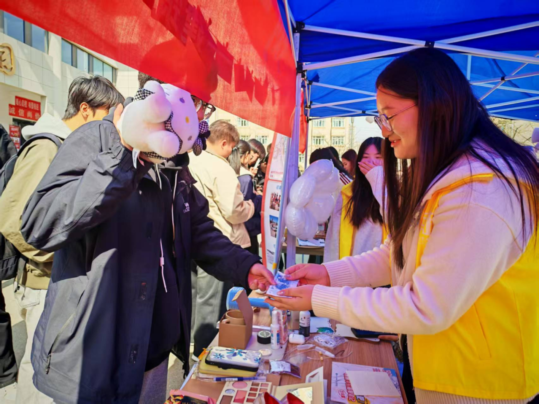 活动现场设置环保义卖专区,志愿者们精心布置摊位,各类闲置好物被有序摆放,倡导循环利用、低碳消费。参与者在选购爱心物品的同时,可在定制树牌上写下对校友的祝福与寄语,卡片将统一悬挂于校友林,让青春寄语与绿树相伴生长。