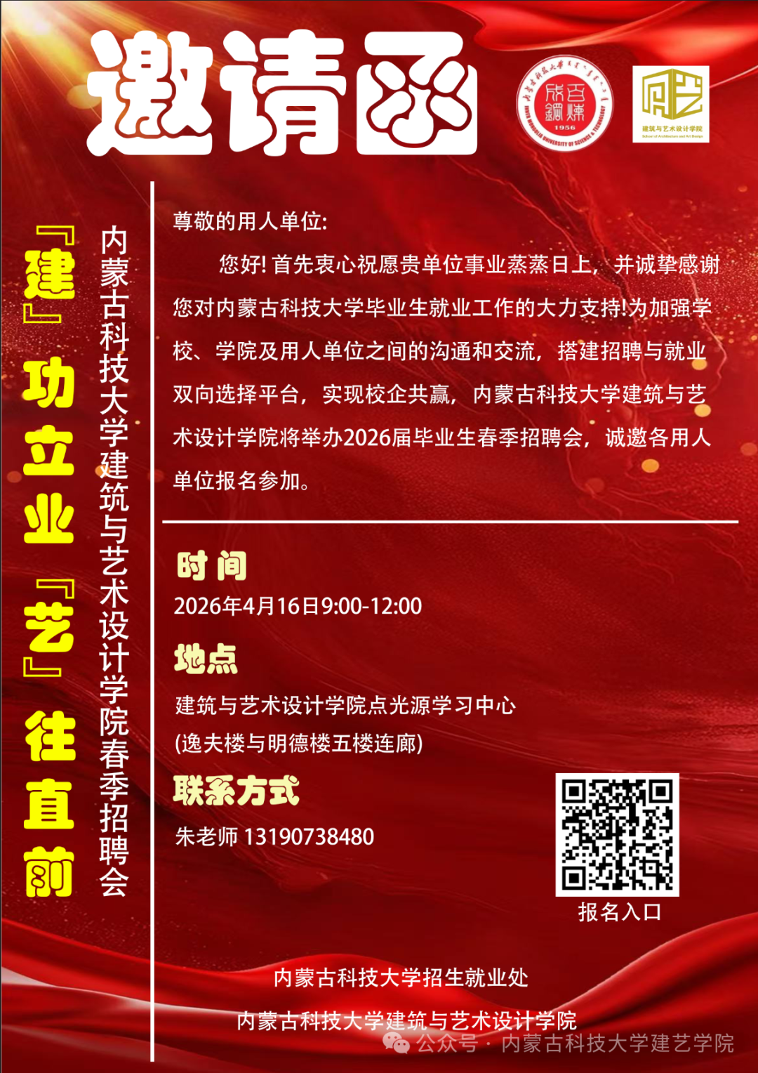 “建功立业,艺往直前”| 304永利集团春季招聘会邀请函