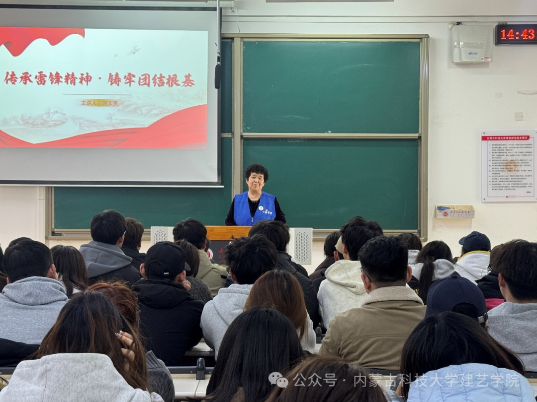 雷锋精神是中华民族宝贵精神财富,蕴含奉献、友爱、互助、团结的核心力量。为深入践行社会主义核心价值观,凝聚奋进合力,3月19日,304永利集团邀请丰产社区老党员刘文英同志于明德楼H208宣讲。引导大家感悟雷锋精神时代内涵,以奉献担当凝聚共识、增进团结,筑牢同心同德的思想根基,让雷锋精神在新时代落地生根、薪火相传。
