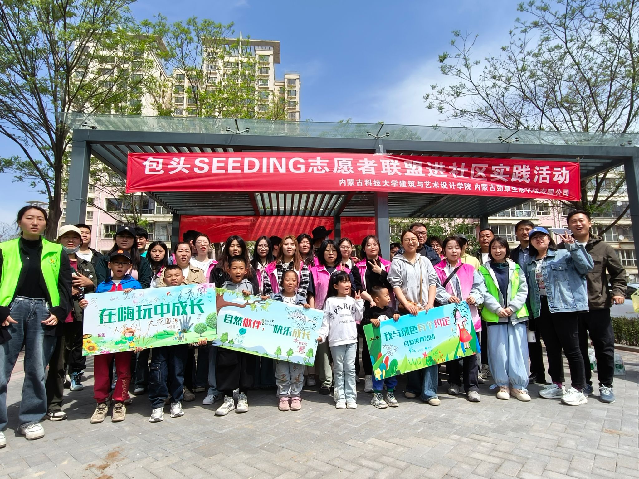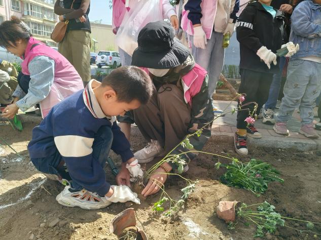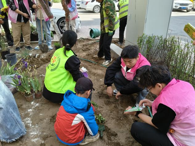 5月2日上午,志愿者们来到包头市九原区龙苑小区内进行玩“美”无“缺”——社区花园营建与自然美育活动的志愿服务活动。同学们与社区小朋友一同在社区内种植花草。