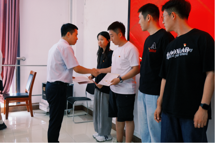会议第四项,由包书记、吴书记为毕业生党员发放政治生日贺卡,叮嘱毕业生要铭记“入党一生一次,入党一生一世”,要持续提高党性修养,用实际行动践行对党的庄严承诺,为党和人民事业的发展贡献力量。