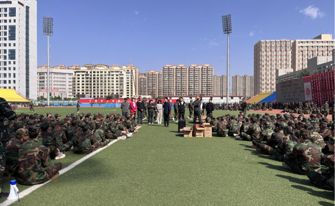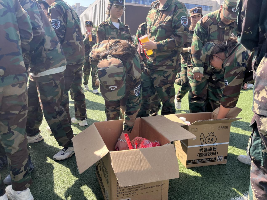 随后,新生们收到了学院准备的清凉饮品以及具有学院特色的文创钥匙扣,训练场上笑声与感谢声交织,一份份饮品和礼物将学院的温暖与关怀传递到每一位新生心中。