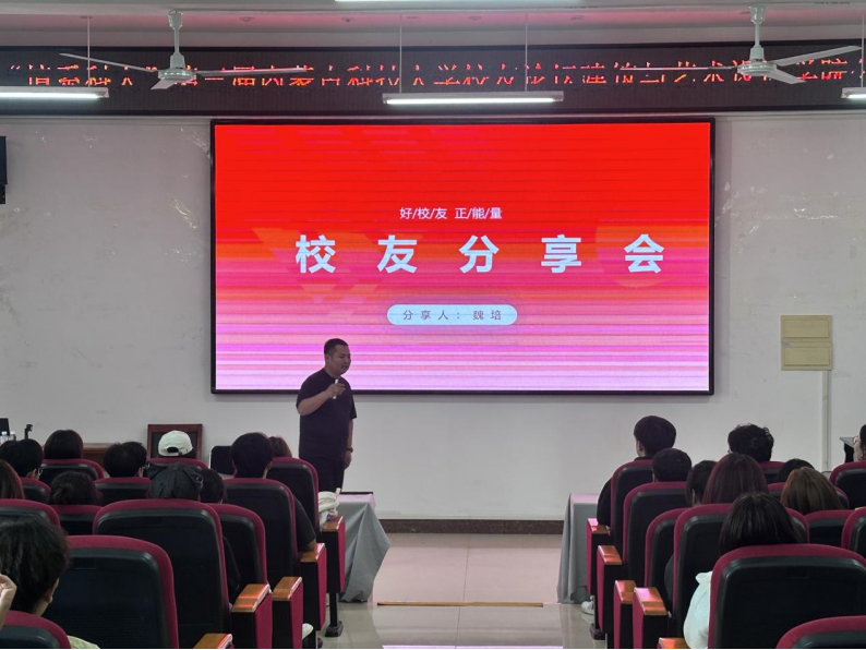 校友事迹分享环节精彩纷呈。2015级产品设计优秀校友、包头铸梦文化信息咨询有限责任公司经理魏培以《小魏的故事》为主线,向我院广大师生作事迹分享,并鼓励大家向书本学习、向实践学习、向社会学习、向师长学习,现场气氛活跃,反响热烈。
