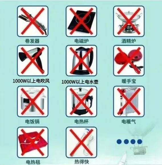 宿舍火灾是极易造成人员损失的一种火灾,宿舍内不仅要禁用大功率电器,禁火也是必要的