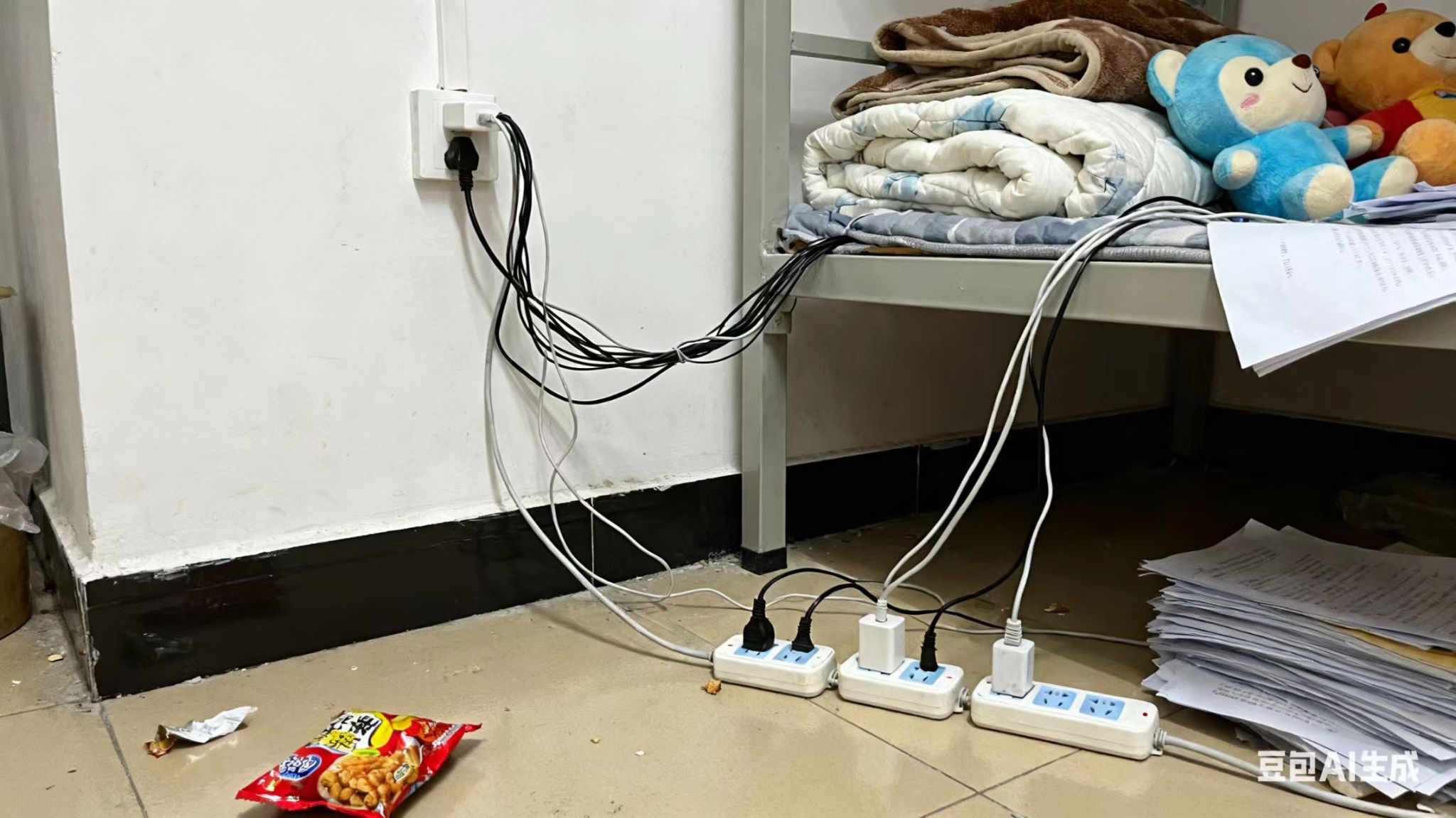 - 学生宿舍:私拉乱接电线、违规使用大功率电器(如电暖器、电磁炉)、卧床吸烟、充电宝长时间充电、堆放易燃杂物等,极易引发短路或明火。
