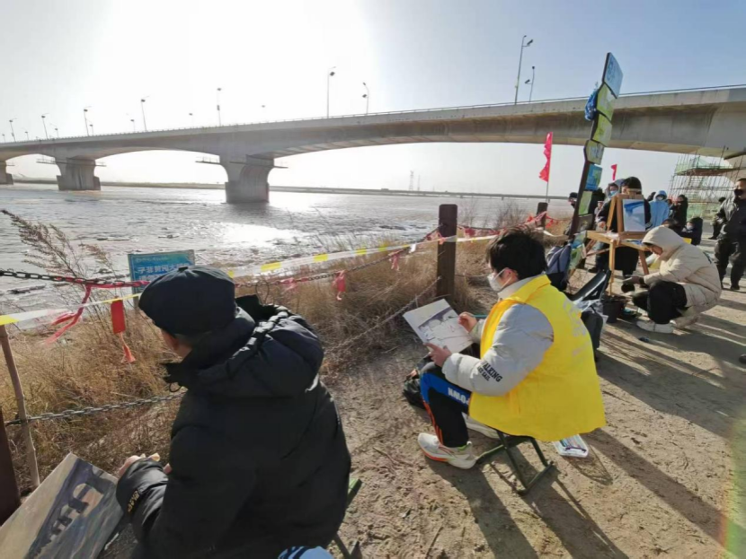 活动第一部分通过文化溯源的讲解与导入,户外写生与创作,中期交流与分享内容。打破课堂局限,将美育融入自然观察与文化探索,以母亲河为纽带,让我院学生在触摸自然肌理,追溯文化脉络中提升审美感知,锤炼创作能力,厚植文化认同与生态情怀。