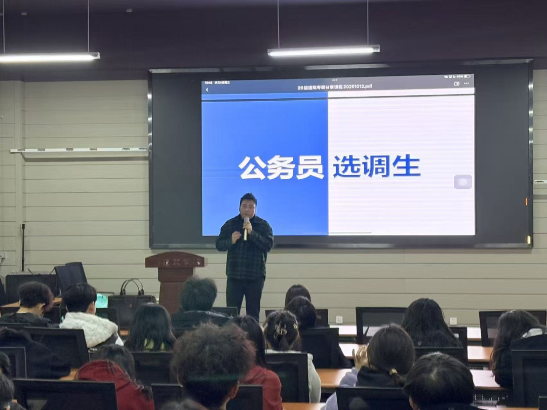 为帮助学生明晰公职类考试方向,掌握科学备考方法,切实提升就业竞争力,2025年11月3日,我院成功举办公务员及事业单位备考专题讲座,毕业年级意向报考学生积极参与聆听。