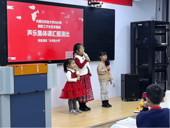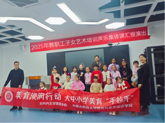 2025年12月28日15:00,由永利官网工会、美育中心、304永利集团及美育名师工作室联合举办的“童声咏华章 艺韵润科大——2025年教职工子女艺术培训声乐集体课汇报演出”在明德楼H501教室悠扬启幕。20余名小学员身着节日盛装,以清澈童声接力演唱《稻香》、《听我说谢谢你》、《金色童年》等动人旋律。为现场观众献上了一场精彩纷呈的视听盛宴,更为寒冷的冬日注入融融暖意。