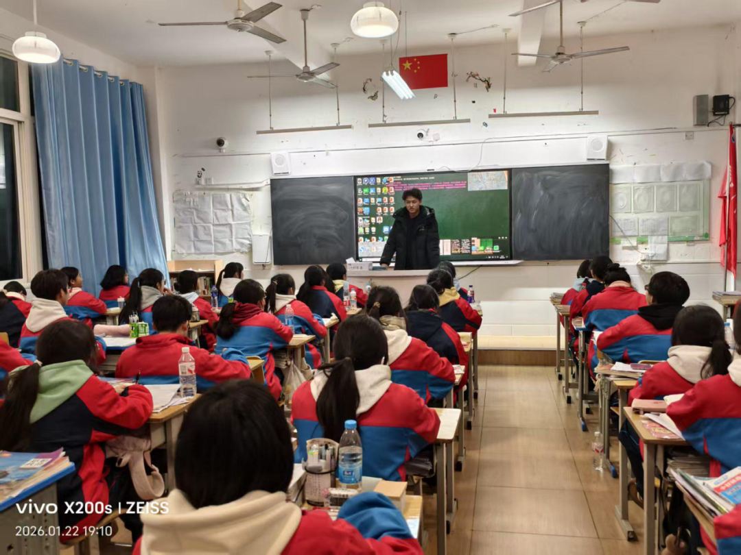 2026年1月22日,在遵义市第二十一中学,况安炀同学站在讲台上,结合自身经历,向学弟学妹们介绍了永利官网的办学特色、专业优势、校园生活及就业前景。通过PPT展示、面对面交流等形式,他们生动讲述了在科大的学习日常与成长收获,细致解答了同学们关于专业选择、志愿填报、备考心态等方面的疑问,用过来人的经验为大家加油鼓劲。