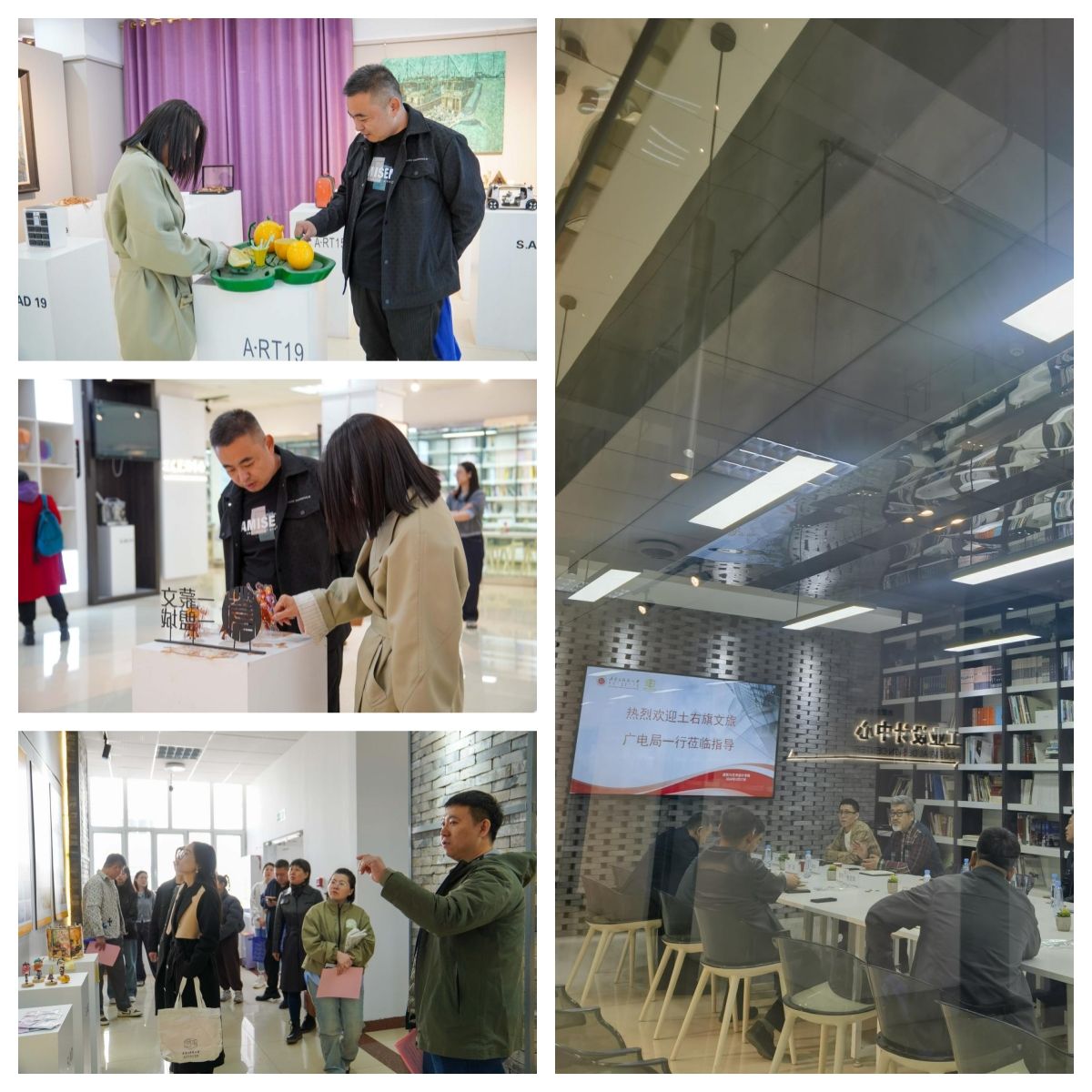 会议在学院一楼共创空间举行,韩冬楠院长介绍我院乡村振兴领域相关工作成果、学院未来城校融合工作方向和计划。会后对学院教学、科研等相关空间进行了参观。之后企业负责人深入工作室与教师进行了深入的交流。