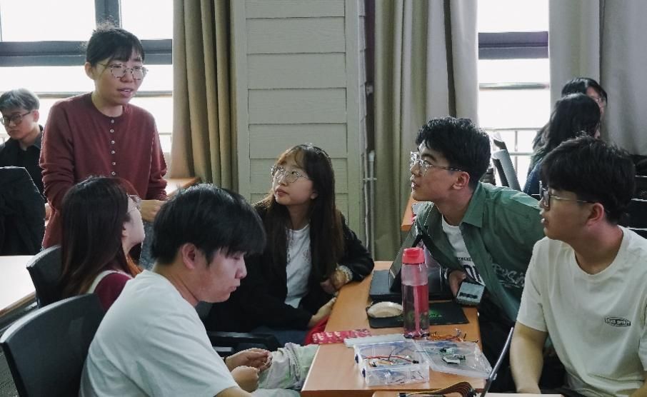 讲座中王教授聚焦文化遗产数字化保护和工业数字孪生,通过深入浅出的技术理论讲解和先进生动的设计案例分享,为大家展示了人工智能驱动下的文化遗产数字化保护和工业数字孪生等多个领域的最新研究进展,开拓了学生们的眼界,带给学生一场精彩的知识盛宴。在工作坊教学中,王教授指导同学们运用智能硬件和软件相结合的方式,为文化数字化转化提供新的实现路径。同学们以小组的方式,学习讨论关于文化主题的交互装置设计方案。这种新颖的实现方式成功激发了同学们的学习热情和创作激情,整个工作坊学习氛围浓烈,积极。