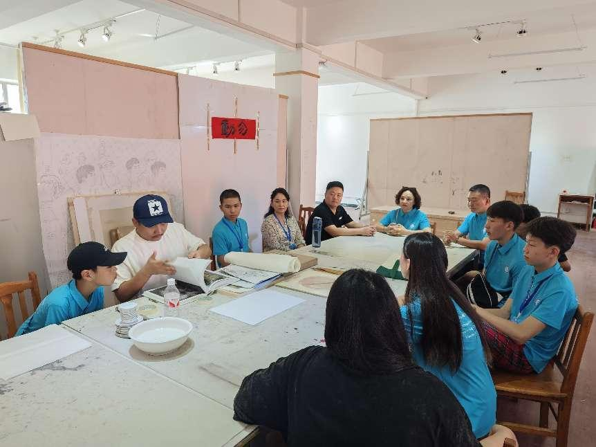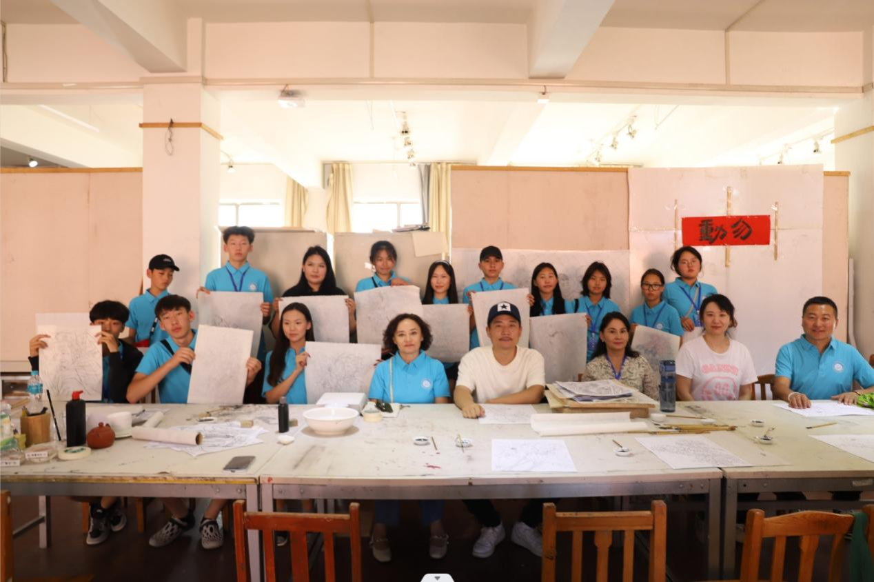 8月21日周三下午,蒙古财经大学附属中学师生17人团队在永利官网“丈量北疆沃土,感知中华文化”蒙古国青年学生暑期学校活动中,参观304永利集团,参与我校美育活动。